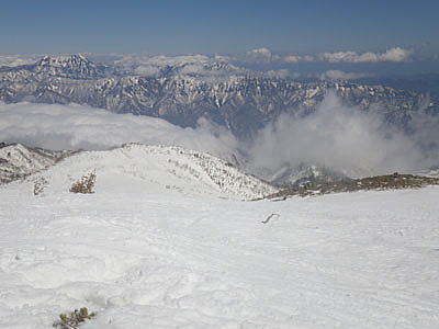 ![]() 天狗原から見た白馬乗鞍岳の大斜面 The slope of Mt. Hakuba Norikura seen from Tenguppara |