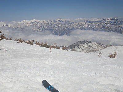 3-4月の低温のおかげで雪が多いというのに、3月の連休が海外で行けなかった後、みんなの都合が合わず。案内人は、今年も白馬乗鞍岳まで往復してみた。確かに豊富な雪。しかし、白馬乗鞍周辺はアイスバーン。