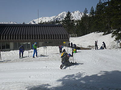 ![]() ロープウェイ駅付近の雪はずいぶん少なくなっていた。 The snow around the ropeway station was no longer deep. |