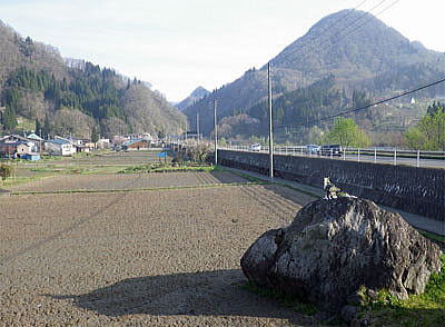 ![]() 小谷村の畑の中の岩の上の祠 A tiny shrine on a rock in a cropland, Otari Village |