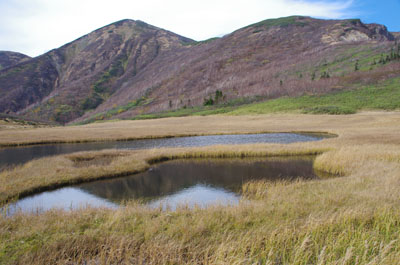 ![]() Tengu no Niwa seen on the way to the summit of Mt. Hiuchi. 火打山頂上の下から見た天狗の庭。 |