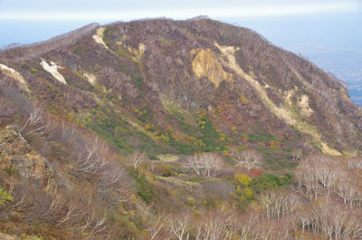 ![]() The northern face of Okura-yama seen from the ridge ear Kurosawa-ike. 黒沢池手前の尾根から見た妙高山外輪山北部の大倉山の 北斜面。 |
