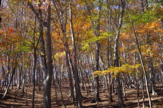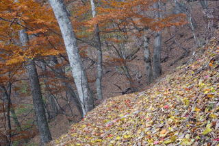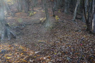 ![]() 途中、落ち葉の海で、どこに道があるのかわからない。 I could not identify the trail in the sea of dead leaves. |