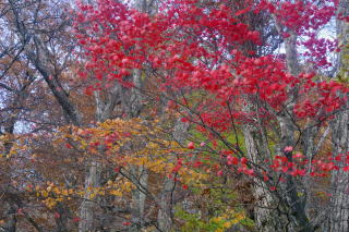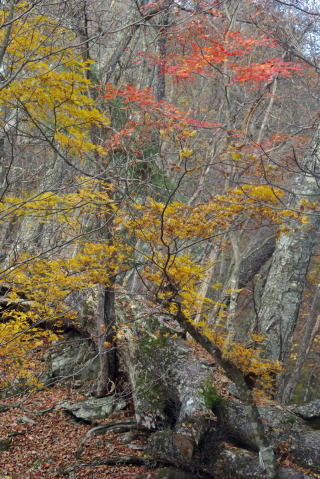 やはり、東日原から一杯水避難小屋の間は紅葉がきれい。しかも、登山口の東日原の標高が既に高く、かつ、つづら折れと巻道で勾配を抑制し、道の表面の状態もとても良いので、川苔山(川乗山)や本仁田山に比べて登山、下山も容易。