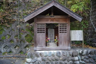 ![]() もえぎの湯の脇にある馬頭観音。かつては馬が重要な 運搬手段だったことをうかがわせる。 A god of horse head next to the Moegi no Yu hot springs. It indicates that horses used to be an important means of transportation. |