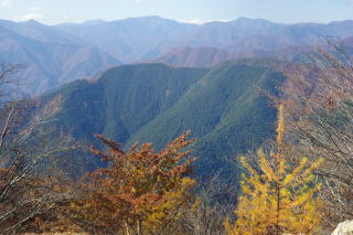 ![]() 川苔山からの雲取山(中央)、 東京都第2位の高峰である芋の木ドッケ(1,946 m)。 Kumotori Yama (2,017 meters - the highest of Tokyo, in the center) and Imo no Ki Dokke, 2nd highest of Tokyo in the right. |