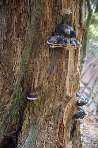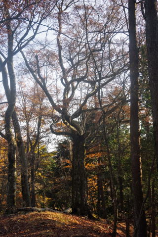 ![]() ゴンザス尾根ではところどころに巨大なコメツガの木がある。 Gigantic Kome Tsuga trees are found on the Gonzasu Riege. |