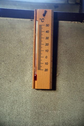 ![]() 日の出の頃の室温。夜は寒かった。 The temperature in side at sun rise. |