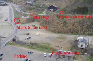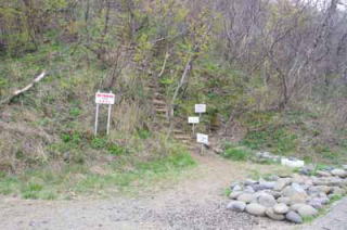 ![]() Trail head. There are warnings of the private ownership of the land and the trail, of prohibition of going out of the trail to take photos, etc. The stones in the right side are for volunteers to repair the trail. |