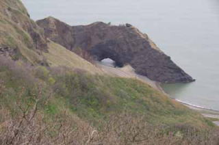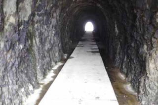 ![]() The entrance to the tunnel in the right and caves in the left. |