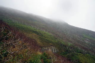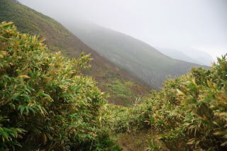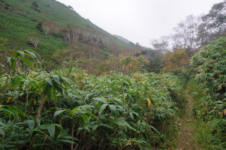 ![]() 急斜面を下りて間もなくアナマ岩の横に出る。 I was almost arriving at the Anama Rock. |