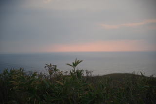 ![]() この向こうから延々と歩いて来て、漸く浜中への車道に出る。 フルサイズの高感度のカメラなので明るく映っているが、 実際は薄暗くなっていた。 At last, I arrived at a road to Hamanaka walking fast on the trail in this grassland. Because of the capability of my camera, the photo does not show the darkness. |
