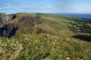 ![]() 桃岩展望地からその入り口の駐車場へ。 From Momo-iwa Viewpoint to the parking area. |