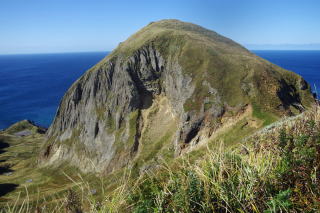 ![]() 桃岩。地下から盛り上がって来た溶岩柱とのこと。 Momo-iwa, i.e. Peach Rock. |