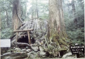 ![]() 翁杉の前で。 In front of Okina-sugi. |