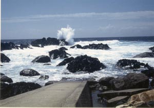 | 9月14日: 山は雨でも、麓は好天なので、原付スクーターを借りて、左回りに島を1周。 14 September: A clockwise round trip through the island on a rented small motor bike. |