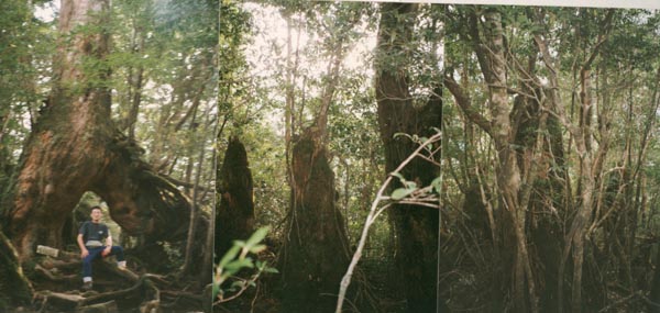 | 25 September | 辻峠、小杉谷、森林軌道、翁杉、ウィルソン株、大王杉、夫婦杉、縄文杉を経て、新高塚小屋泊。 Tsusji Toge (Pass), Kosugi-dani, shirin kido (forest railroad), Okina (Old Man) Sugi, Wilson Kabu (Stump), Daio (Great King) Sugi, Meoto (Couple) Sugi, and Jomon Sugi. Lodging at Shin Takatsuka-Goya. |