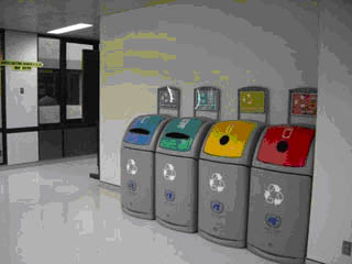 左: 国連ビル内のごみ分別収集 右: 国連ビルの中庭で