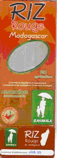 左は、FANAMBYの売り出したアンジュズルベ産の赤米の箱。1箱500グラム入り。