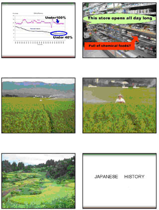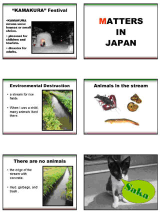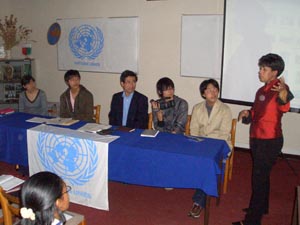 日本の学生たちから、食の安全、対外依存、生態系の劣化、都市の混雑等、日本が直面する課題について、パワーポイントを使って報告しました。