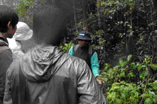左: 木の上のインドリを見上げているところ。
