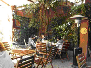 ホテル・サカマンガに泊まりました。私たち以外に日本人はほとんど泊まらないようですが、フランス人には大人気のホテルで、早めの予約が重要です。写真はその中庭です。