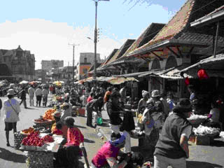 はやはり市場でしょう。(生野菜や皮をむかないで食べる果物は寄生虫に注意。)