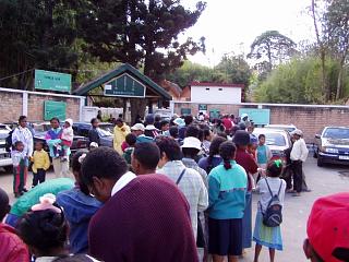 市内バスは、ワゴン車が多く、大きくても、二つ目の写真の右にあるようなかなり小型のマイクロバスの類です。こういうバスは、車体後部のドアから乗り降りします。