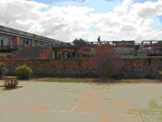 左はアンタナナリボ大学の前の近距離のミニバス。右は、アンタナナリボ大学前入り口(正面入り口ではない。)で。