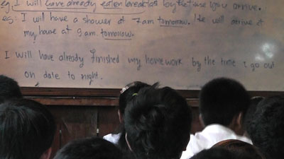 ![]() 未来完了という、日本の中学では教えない高度な 英語を教えていました。 |