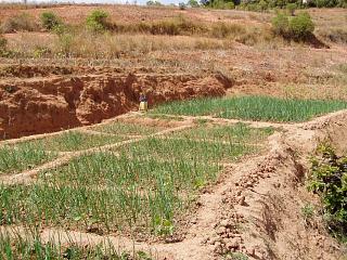 小学校の運営費を作り出すため、一部の村民が協力して試みに植えたアスパラガス。現在アンタナナリボに出回っているものは品質が悪いが、外国人が高値で買う。そのため、高品質のものが作れれば、かなりの価格で出せると期待されるとのこと。アスパラ栽培に関しては、JICA専門家の助言を得たとのこと。 |