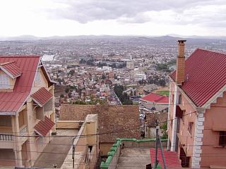 JICAマダガスカル事務所の浦田あゆみ企画調査員と、ホテル・サカマンガの中庭でのビュッフェの昼食。 |