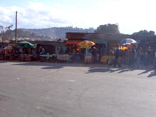 ![]() アンタナナリボ大学の前の食べ物屋を中心とした店舗。 学内の食堂の価格が学生にとっては高いため、 学生の多くはこういった店で食事をとるとのこと。 |