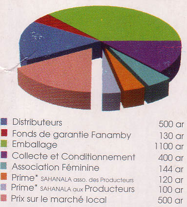 ![]() その箱に印刷されている売り上げ配分のグラフ (ar = アリアリ(マダガスカルの通貨。1,000アリアリが約70円)) |