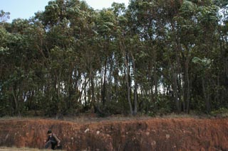 ![]() この残存自然林は、昨年、保護区に仮指定され、 現在、本指定に向けて管理計画作りの作業が行われて いるとのこと。仮指定とともに養成された地元の人によるガイド により残存自然林の中を歩いた。 |