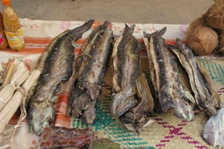 ![]() 途中の集落で売られていたウナギの干物。 |