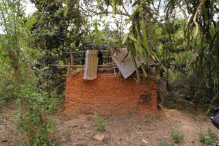 ![]() 2年前の訪問時には右のようにきれいだった隊員のトイレは、屋根も崩れ落ち、壁もかなり崩れきていて、 見る影もなかった。雨期にはどうしているのだろうか。隊員個人は非情に明るく、元気だが、 住まいも天井が低く、テントのような状態。住まいの条件は悪い。 |
