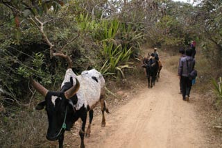 ![]() 首の後ろにこぶのある、マダガスカルで一般的な ゼブ牛とすれ違う。 |
