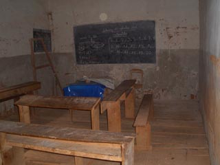 ![]() 電気もない村である上、窓も大きくないので、 暗い教室。教室数が足りないので、2学年一緒に授業。 急に地域の先生方の会議が入ったため、 この日学校は臨時休校。 ( (c)Takahashi Toshiaki) |