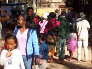 アンタナナリボ付近の青年海外協力隊員のみなさんと、ホテル・サカマンガの中庭でビュッフェ昼食を取りながら懇談。たまたま歯の治療に地方から来られていた隊員及び村の人達に代わって首都に野菜を売りに来た一昨日の村の隊員も来て下さり、計5名の方とお話できた。JICA事務所から帰る時にちょうどタクシーから降りて来られた、やはり地方の隊員、また、日本人経営の旅行会社で会った方を含めると、今回は計7名もの隊員とお話できた。