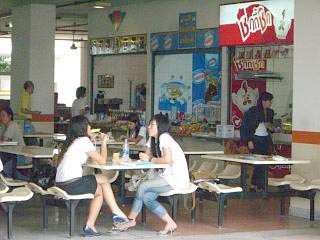 ![]() ショッピングセンターの大衆食堂と同じく、小さな店が たくさんあって、そこから好きなものを買って食べる。 |