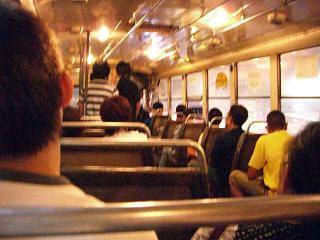 ![]() 渋滞のためにタクシーが乗車拒否するので、 今夜もバスでホテルに帰る。 |