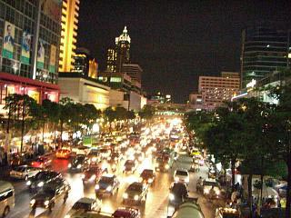 ![]() 夜になっても渋滞するバンコクの通り |