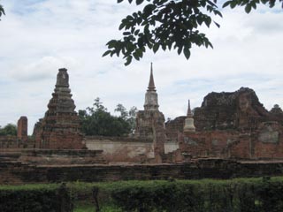 学生だけで、タイの第2王朝の都だったアユタヤにワゴン車バスで往復。体調の悪い教員は豪華病院に行き、food poisoningだと言われる。
