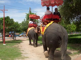 ![]() 森林伐採禁止等のために大量失業したゾウたちが アユタヤで観光客を乗せていた。 ( (c)Sakamaki) |
