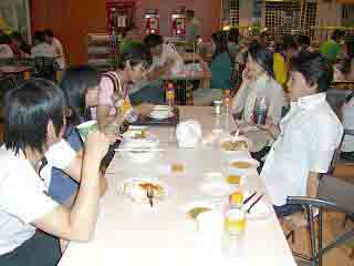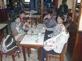 ![]() 遅い昼食を独立大通りに面した店でとる。 一昨年、教員が下見に来た際には、着飾った女性たちが やってきて、飲み物をおごれとねだった店。 今回も、そういう女性たちがカウンターにたむろし、 男子学生達には気にかかる存在だった。 |